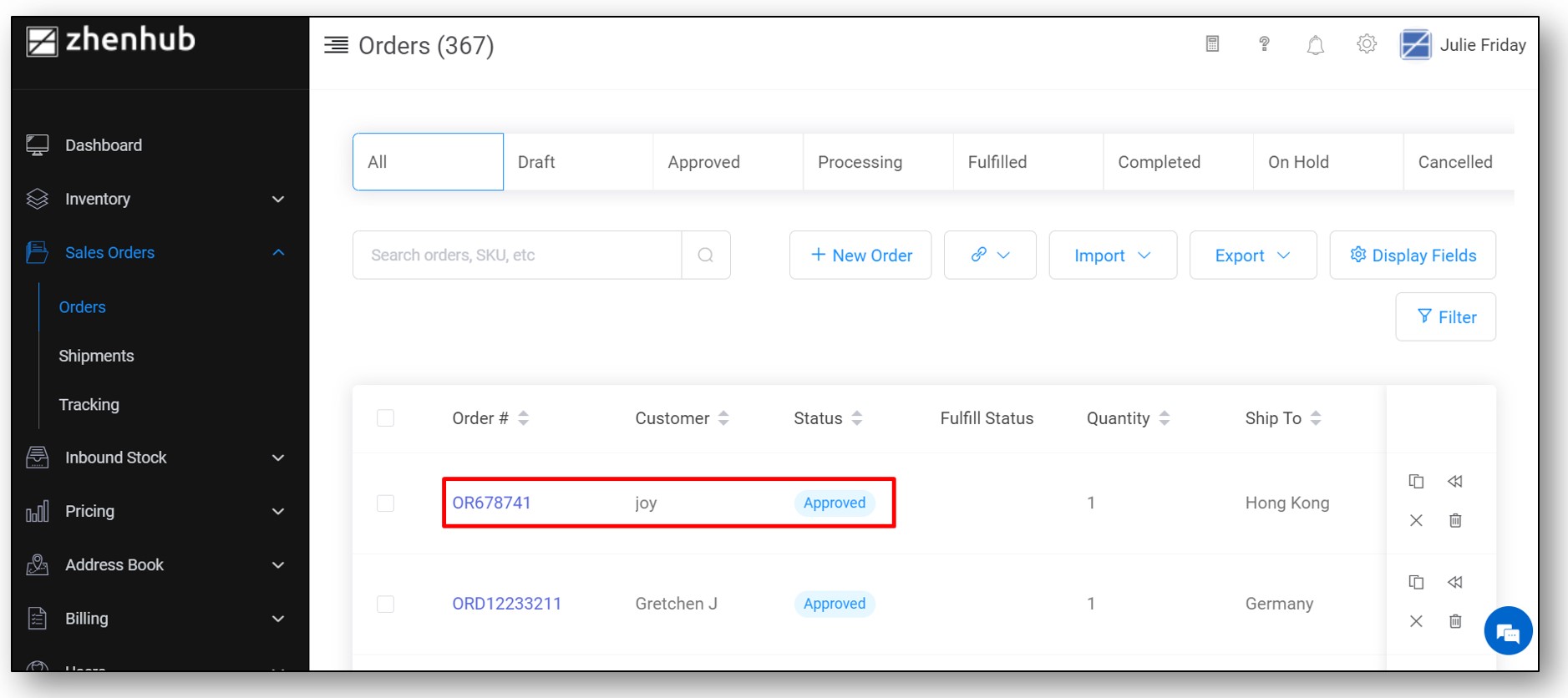 4. Go to "Orders" tab, and search for the order. The original order will be changed from "Processing" to "Approved".