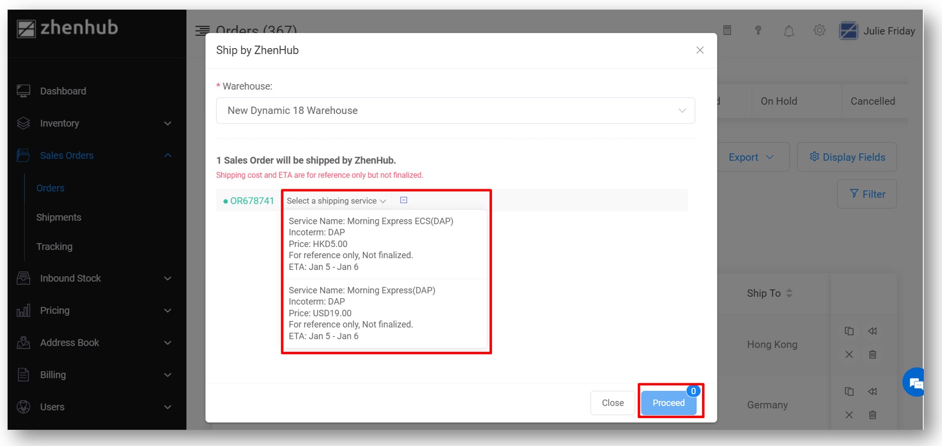 5. After the status change to approve you can now proceed by clicking"Ship by Zhenhub" to revise Shipping service.