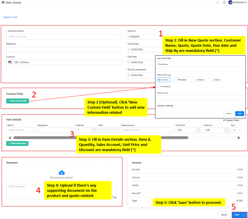 a) To add New Quote manually.