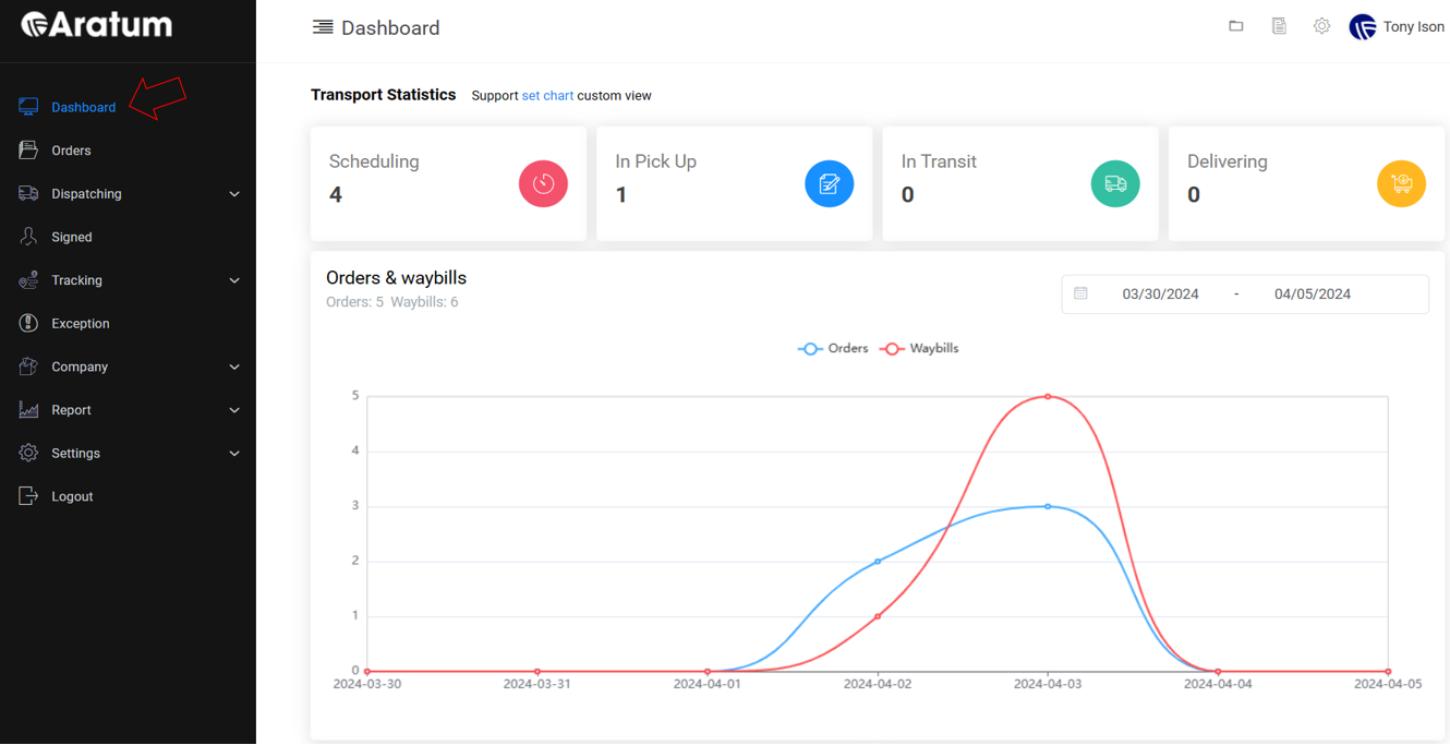 Users can customize their dashboard according to their specific business needs, enhancing its value as a strategic tool. Within this module, users can define key business parameters they wish to monitor, such as Orders Status, Waybills Status, Driver Status, and Vehicles Status, among others. This personalization allows for a focused view on the metrics most critical to their operations and strategic planning. Furthermore, adjusting the dashboard setup requires just a few clicks, ensuring that updates are effortless and can also be executed quickly to reflect the most current data.